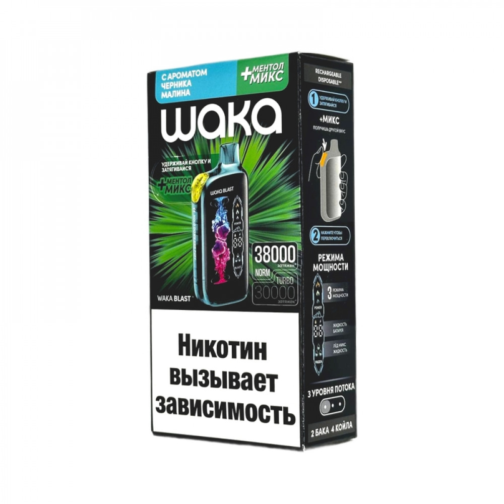 WAKA BLAST 38000 Hard - Черника малина + ментол микс - купить в Сухом Логе